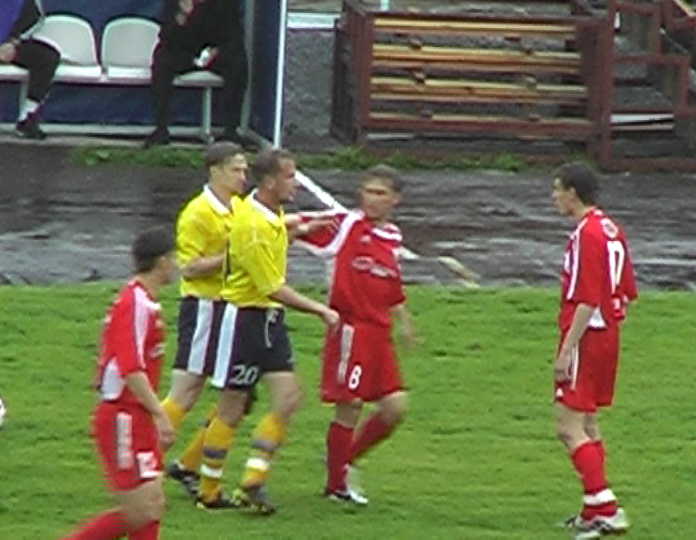 он показал сразу две желтые карточки игрокам "Носты", а затем утихомиривал главного тренера гостей, недовольного судейством.