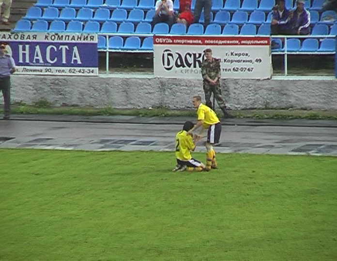 поле через несколько минут после стартового свистка главного арбитра, получив незначительную травму. Заменивший его Олег