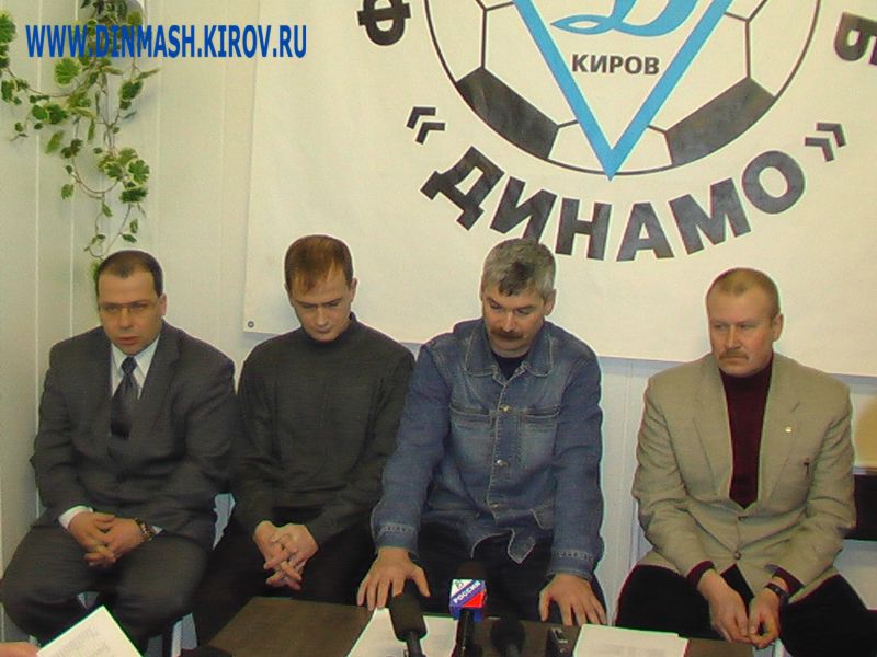 12.02.2006 Первый предсезонный сбор кировского "Динамо" завершала не только контрольная игра, но и пресс-конференция, в которой участвовали главный тренер "Динамо" Константин Оленев, исполнительный директор Андрей Малышев, вице-президент Андрей Михайлов и капитан команды Михаил Тюфяков.